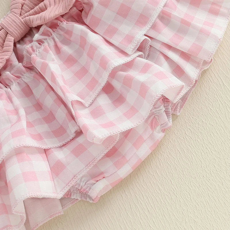 Style your baby girl in the Daddy’s Little Girl Mama’s Whole World Set - an adorable 3-piece outfit made for special moments and everyday fun. This sweet pink set features a ribbed flutter-sleeve bodysuit with a sweet message, frilly gingham shorts with an oversized bow, and a matching check headband to complete the look.