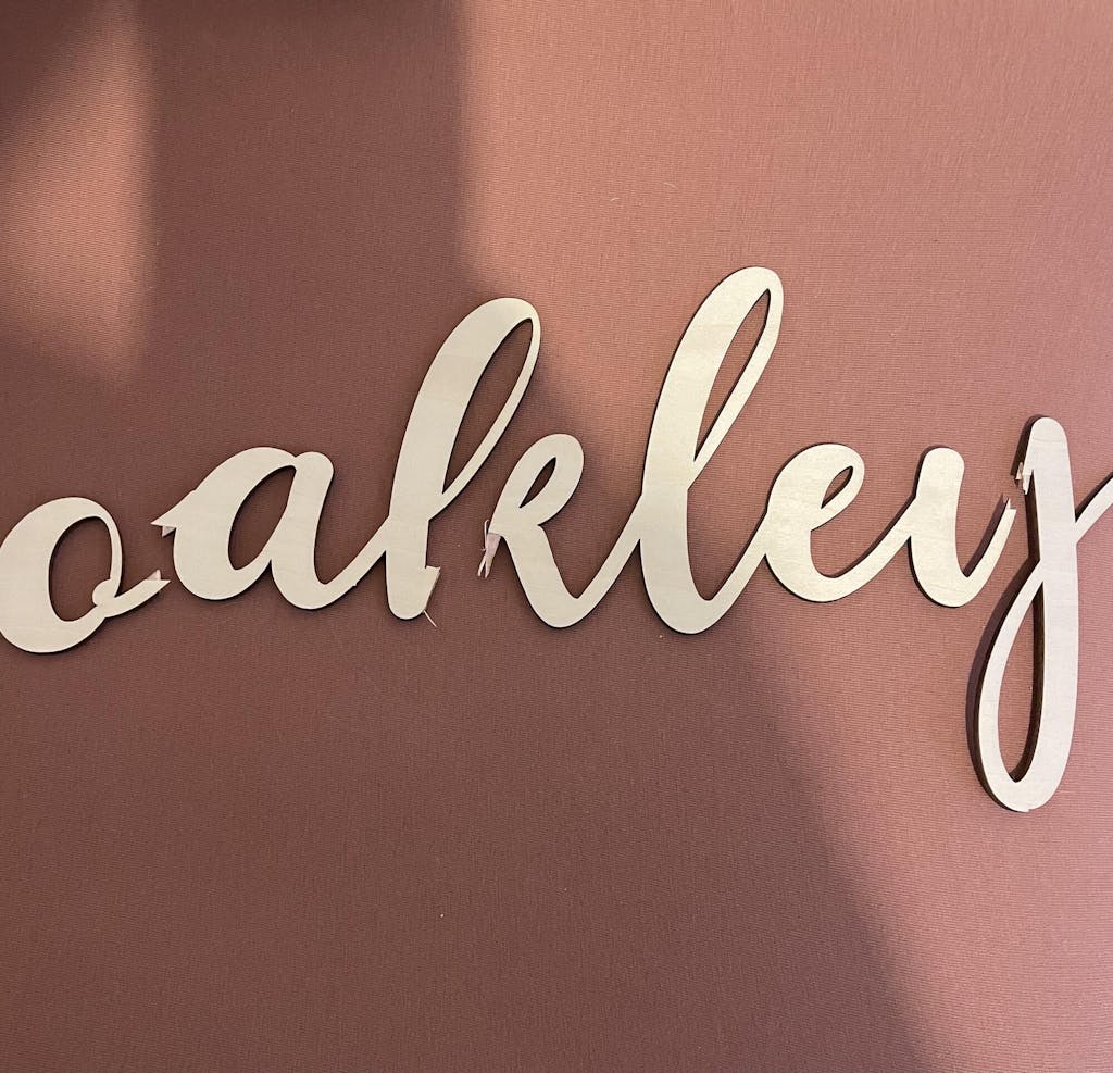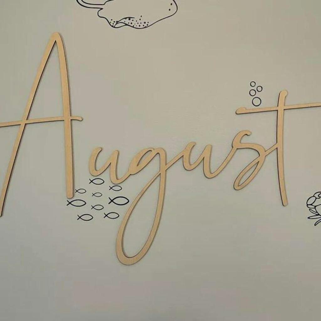 A custom wooden name sign for nursery walls, bedrooms and playrooms. Crafted from natural plywood in your choice of 9 fonts and 4 sizes — a timeless piece that grows with your child.