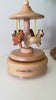 A handcrafted wooden carousel music box with rotating horses. Wind it up to watch the horses spin while "The City of the Sky" plays – a beautiful keepsake for nurseries, bedrooms or gift-giving. Each piece is personalised with your chosen name.