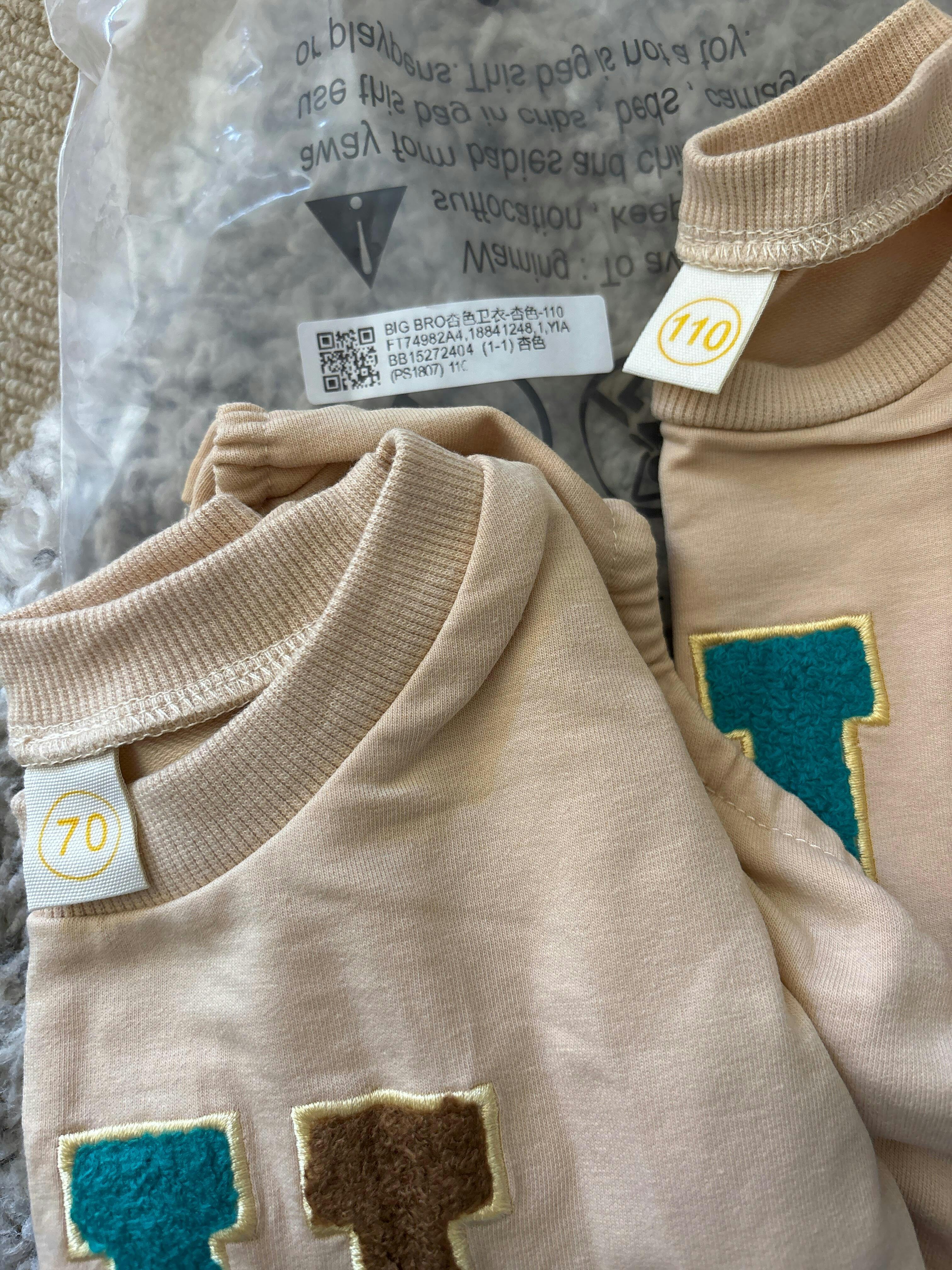 Celebrate his new big brother status with the Big Bro Pullover. Featuring bold fluffy "BIG BRO" lettering on a neutral beige base, it's perfect for sibling announcements, family photos or everyday wear.